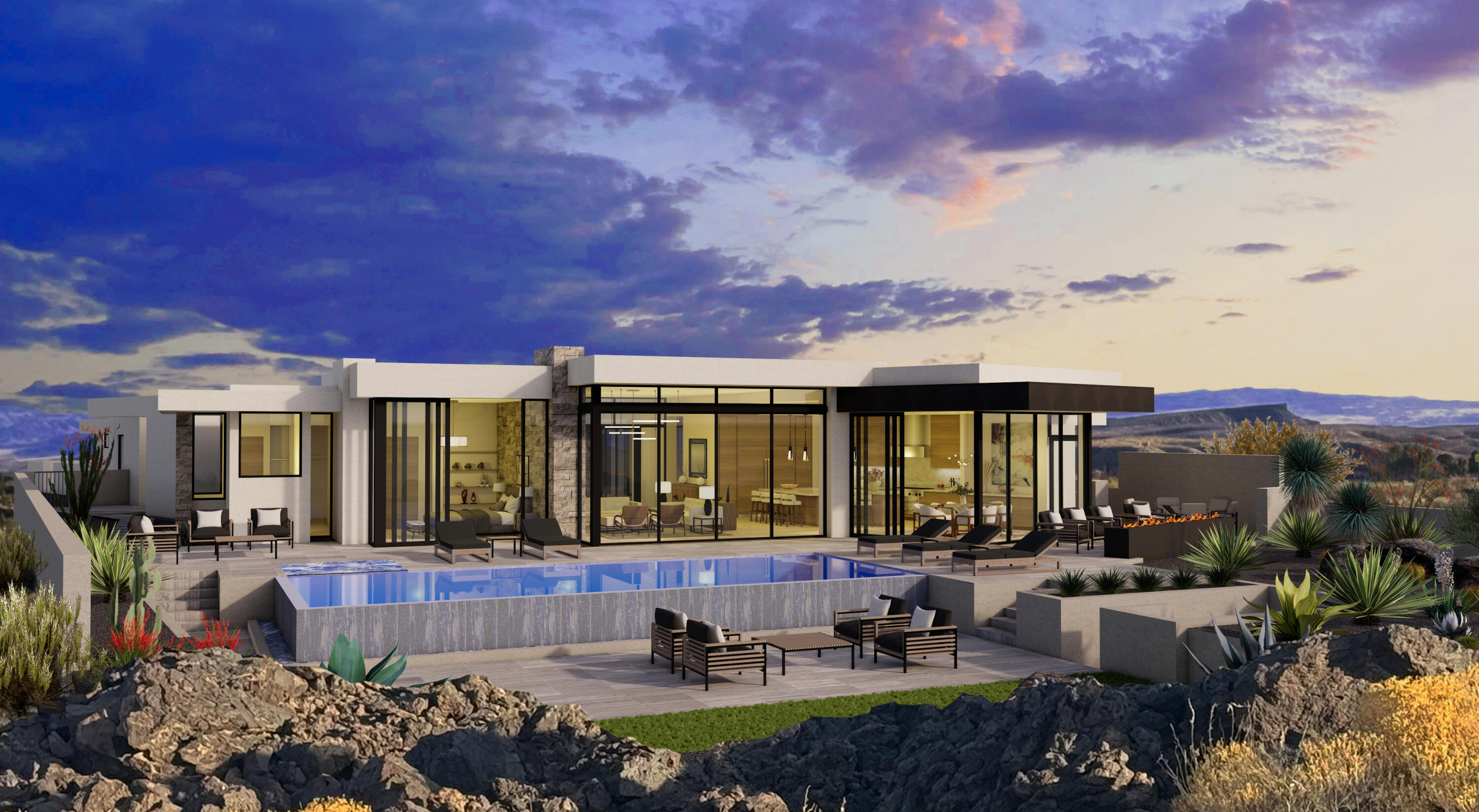 Walls of glass frame the extraordinary red rock and mountain vistas, creating a seamless connection between indoor living and the breathtaking natural surroundings. The open-concept design features expansive living areas, a chef's kitchen with top-tier finishes, and thoughtfully designed spaces for both entertaining and relaxation. Each bedroom offers its own private ensuite, ensuring comfort and privacy for family and guests alike. The primary suite is a retreat of its own, with stunning views and a spa-inspired bathroom