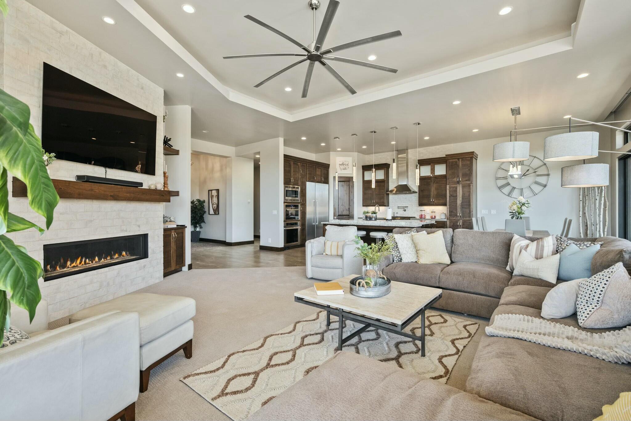 Inside, the open floor plan is filled with natural light, featuring a well-designed kitchen with modern appliances, ample counter space, and a large island. The primary suite offers a peaceful retreat with a spacious bathroom, walk-in shower, and soaking tub.